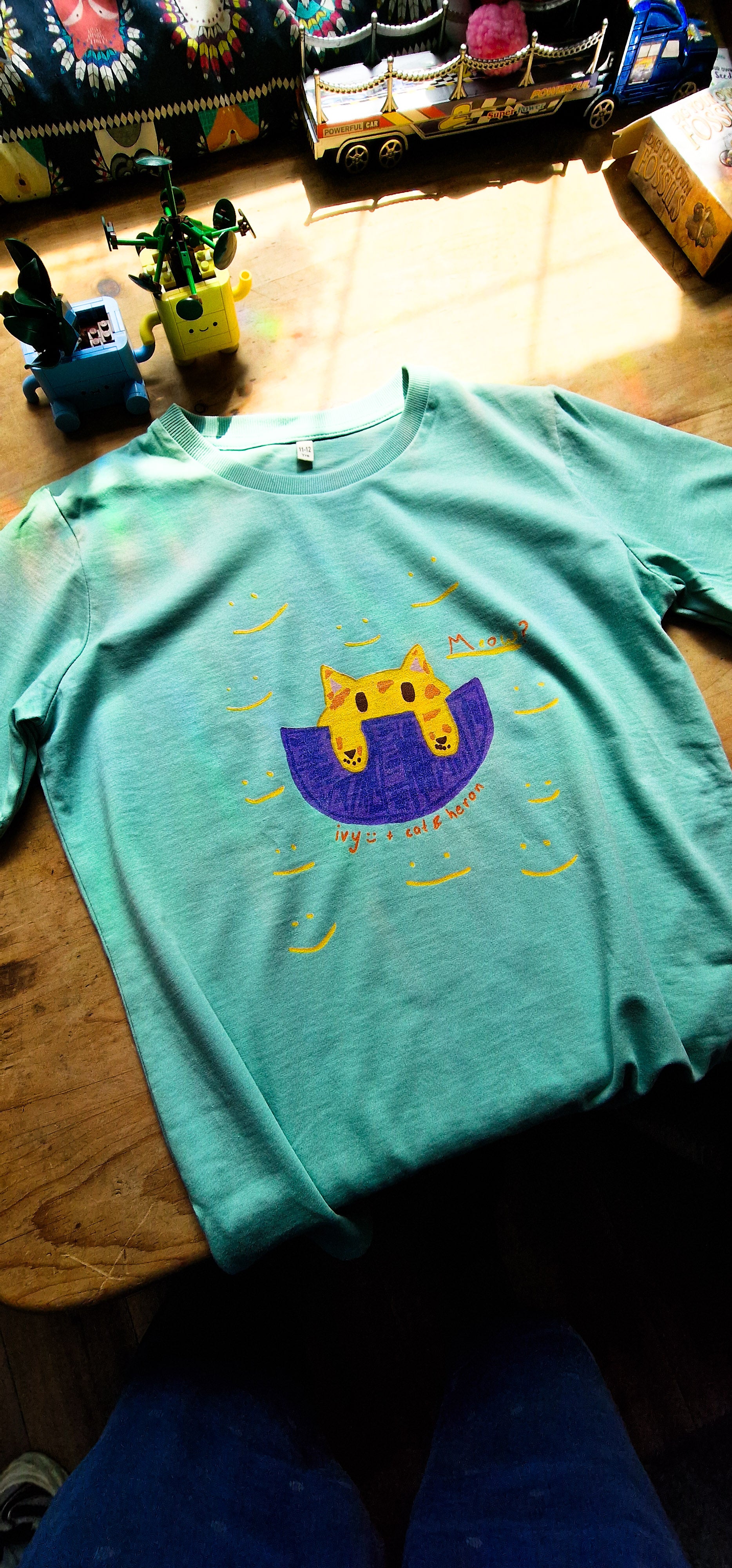 I turn their drawing into a printable design and send professional mockups. Your child chooses the t-shirt colour, plus graphic size and exact placement. I print your order once we are happy with everything.